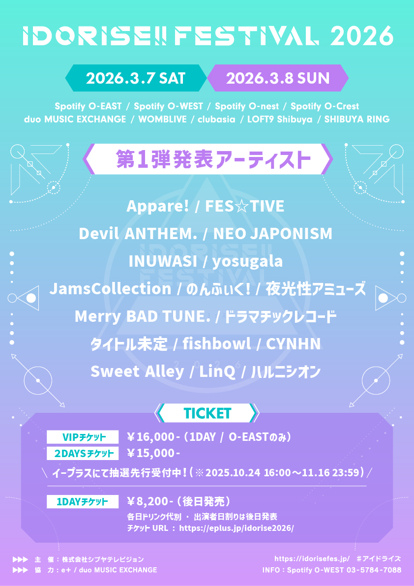 Appare! / FES☆TIVE / Devil ANTHEM. / NEO JAPONISM / INUWASI / yosugala / JamsCollection / のんふぃく︕ / 夜光性アミューズ / Merry BAD TUNE. / ドラマチックレコード / タイトル未定 / fishbowl / CYNHN / Sweet Alley / LinQ / ハルニシオン -