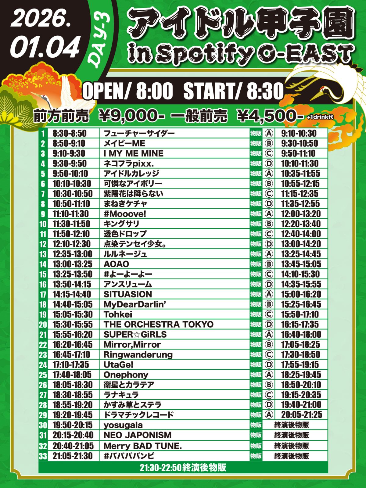 前方¥9,000 / 一般¥4,500 (+1D代) -