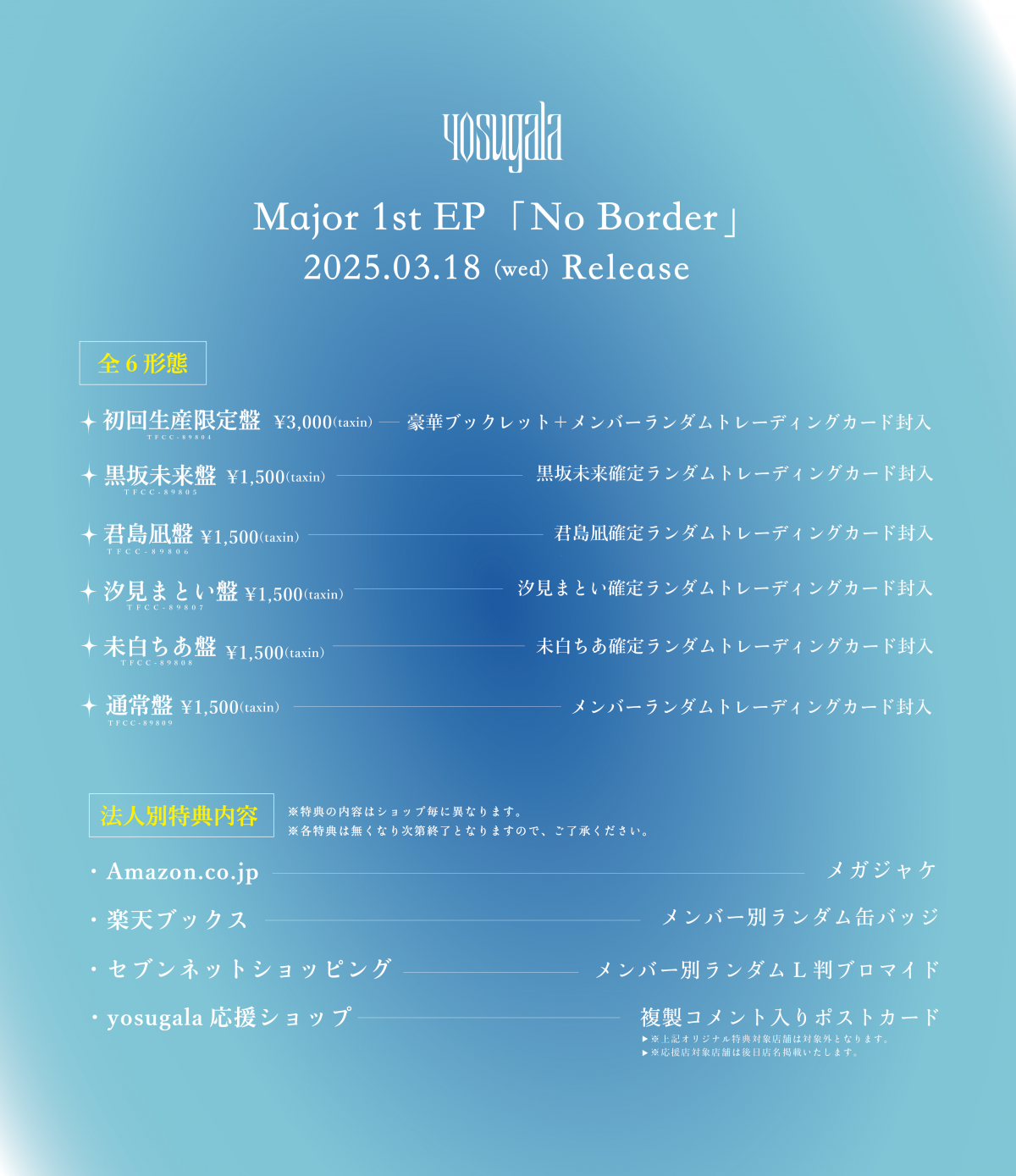 yosugalaとして初となる Major 1st EP「No Border」 の発売が決定いたしました。